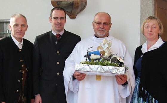 Unser Pfarrer Kret feiert am Osterdienstag seinen 60. Geburtstag. Die Pfarrgemeinde bedankte sich bei der Messe am Ostermontag ganz herzlich bei Pfarrer Kret für sein Wirken hier bei uns in Rainbach und auch in der Pfarre Diersbach; für sein offenes Ohr, wenn jemand Gottesdienste mitgestalten möchte, für die Pfarrverwaltung, für die Betreuung der Homepage, Firmunterricht und so weiter.